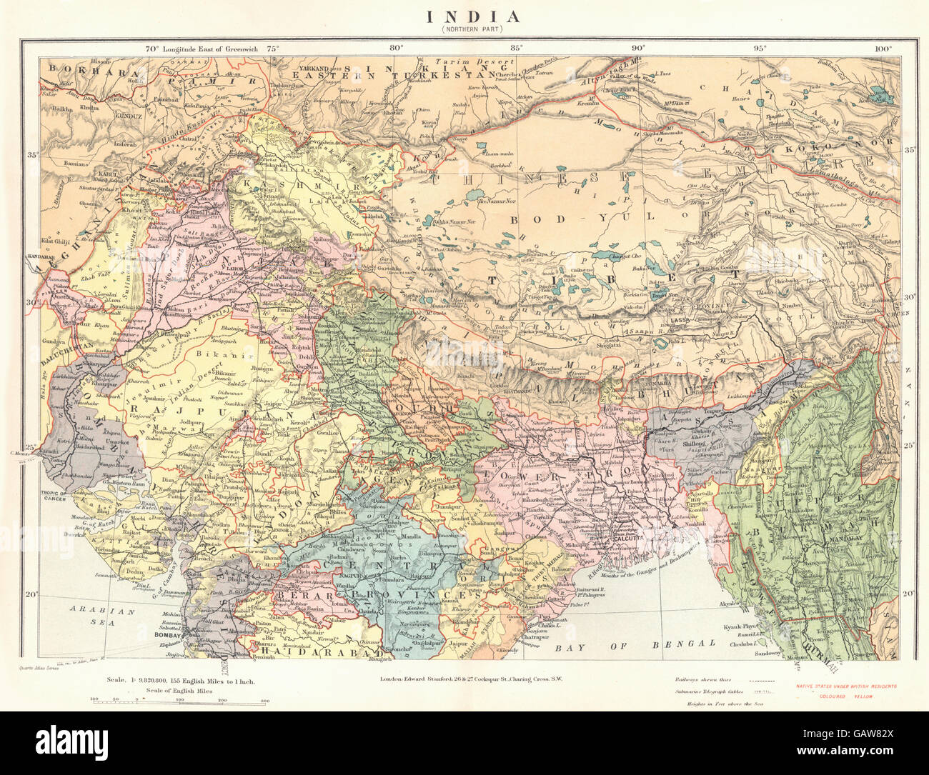 India India Parte Norte El Tibet Nepal Bhutan Stanford 12 Mapa Antiguo Fotografia De Stock Alamy