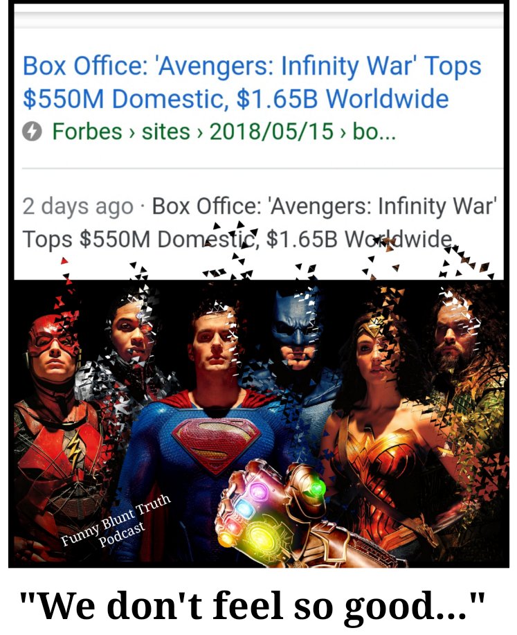 Funnyblunttruth Lol Infinitywar Marvelvsdc Marvel Dc Justiceleague Meme Boxoffice Avengers