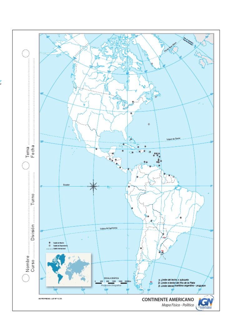 Mapa Nro 3 Por Unidad Continente Americano Fisico Politico