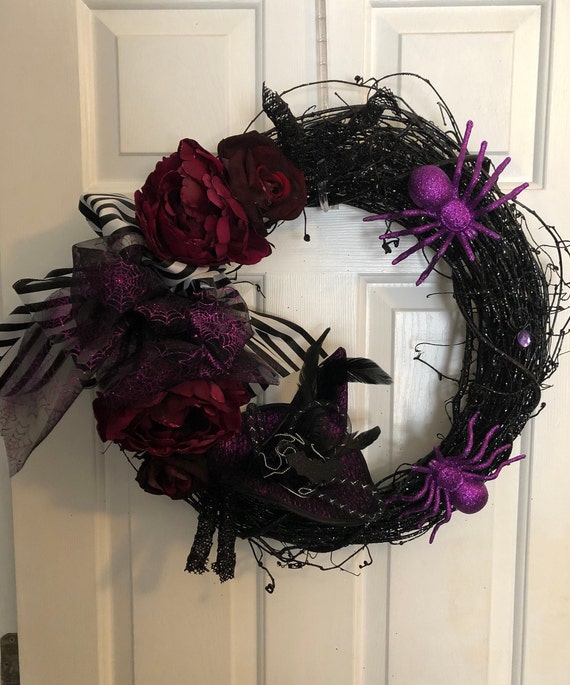 Spooktacular Halloween Black Grapevine Wreath Witchs Hat Etsy