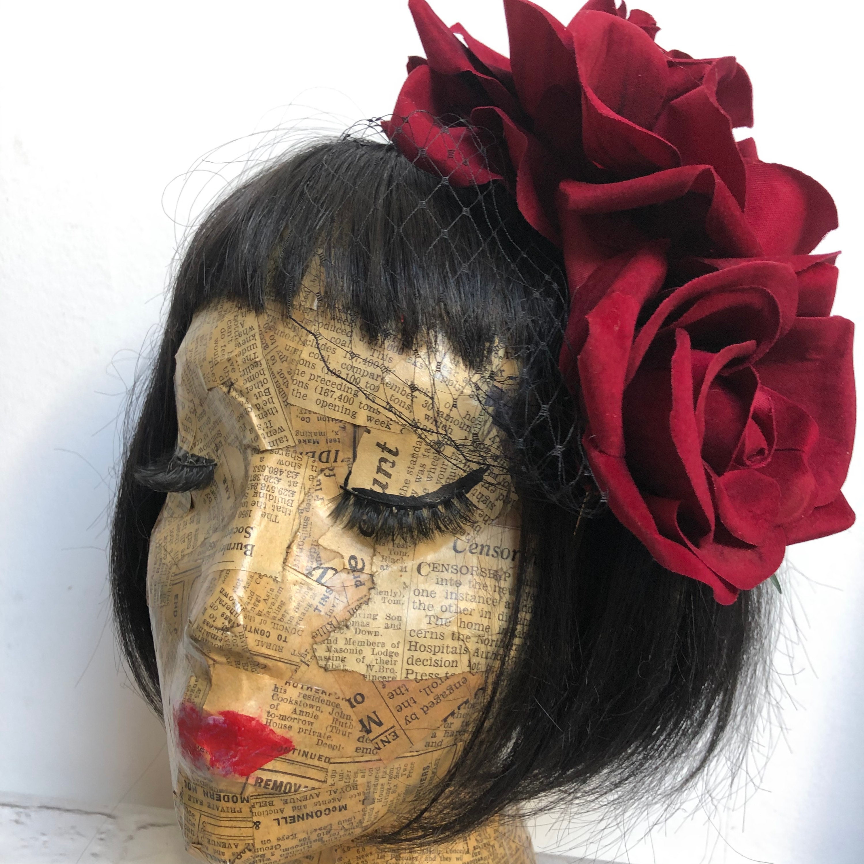 Blood Red Roses Fascinator With Birdcage Veil Rockabilly Pinup 1950s Inspired
