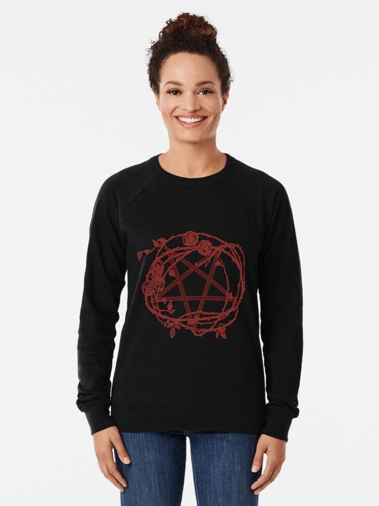 Blood Red Roses Inverted Pentagram Dark Vampire Occult Satanic Lightweight Sweatshirt By H44k0n Redbubble