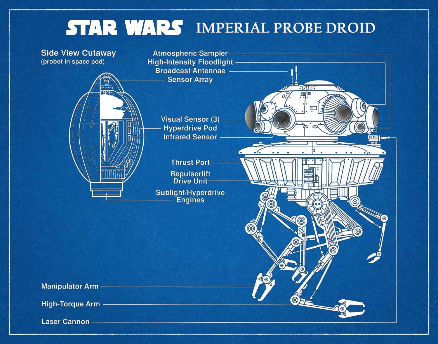 Star Wars Imperial Probe Droid Blueprint Schematic Art Print Wall Poster Engineering Drawing Schematic Drawing