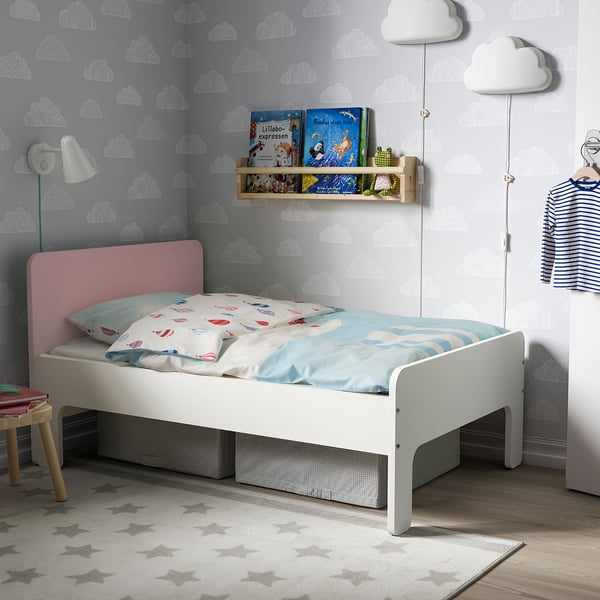 Slakt Estruc Cama Extens Somier Laminas Blanco Rosa Claro Ikea