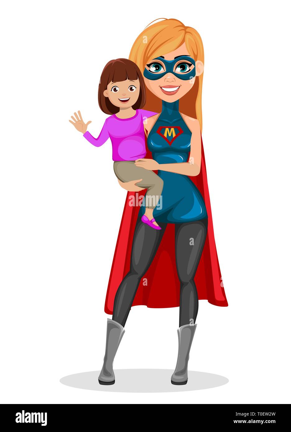 Mujer Madre Super Heroe Concepto De Mujer Vistiendo Trajes De Superheroes Personaje De Caricatura En Brazos A Su Hija Ilustracion Vectorial Sobre Blanco Backgro Imagen Vector De Stock Alamy