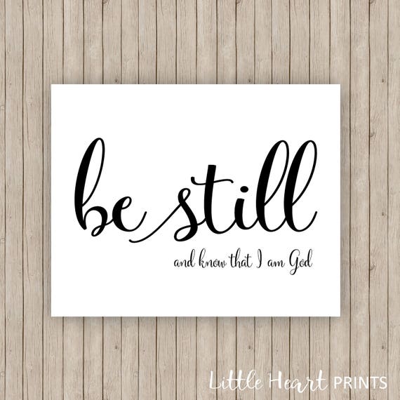 Be still and know that I am God Artist’s Comments This verse encourages us to find God, not in the typically frenetic activity of our daily lives, but in quiet solitary moments. The words – Be Still – in the English dictionary can mean not moving, and being quiet From a biblical perspective, these two words take on much greater meaning Meaning One Be still and know that I am God Psalm 4610 The first meaning comes from the Old Testament and the verse from Psalm 4610, Be still and know that I am God. Be Still & Know Psalm 4610 Be still, and know that I am God 167 21k.