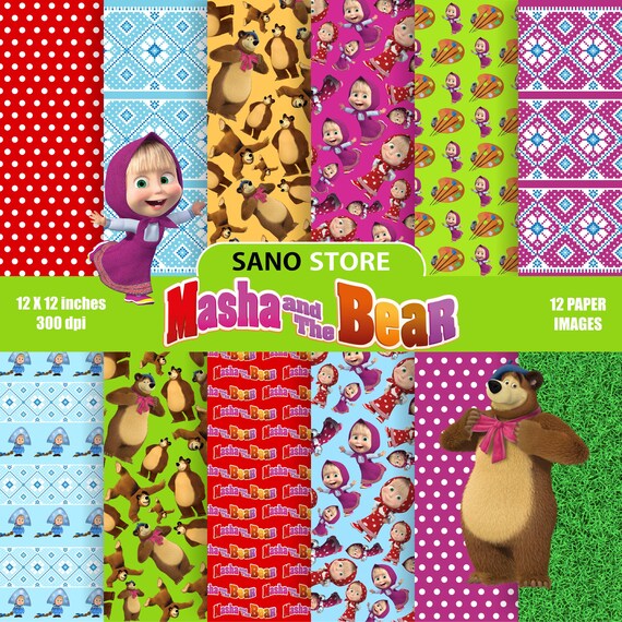 Masha Y El Oso Dibujos Animados Animacion Papel Digital Etsy