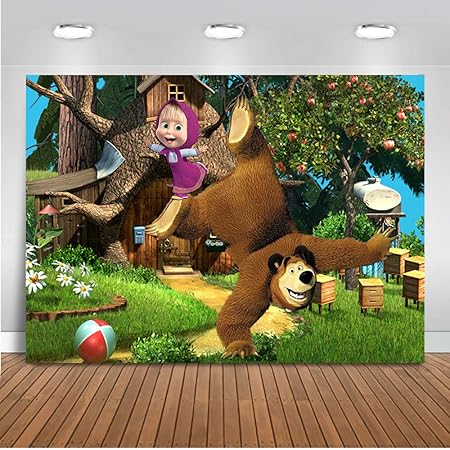 Amazon Com 5x3ft Dibujos Animados Masha Y El Oso Tema Fotografia Fondo Verde Hierba Flores Conejo Bebe Ducha Cumpleanos Telones De Fondo Ninas Princesa Foto Estudio Apoyos Banner Camera Photo