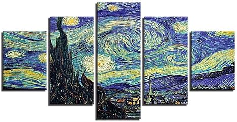 Dldss Pintura En Lienzo Hd Imprime Decoracion Para El Hogar Fondo De La Cabecera 5 Unidades Wall Art Van Gogh Noche Estrellada Fotos Cartel De La Obra De Arte Amazon Es Hogar