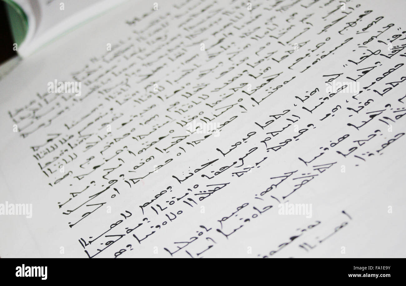 Una Pagina De Un Libro Escolar Escrita En Siriaco Un Dialecto Arameo Sobre La Mesa En La Casa De La Familia Issa En La Aldea De Jish En El Norte De Israel