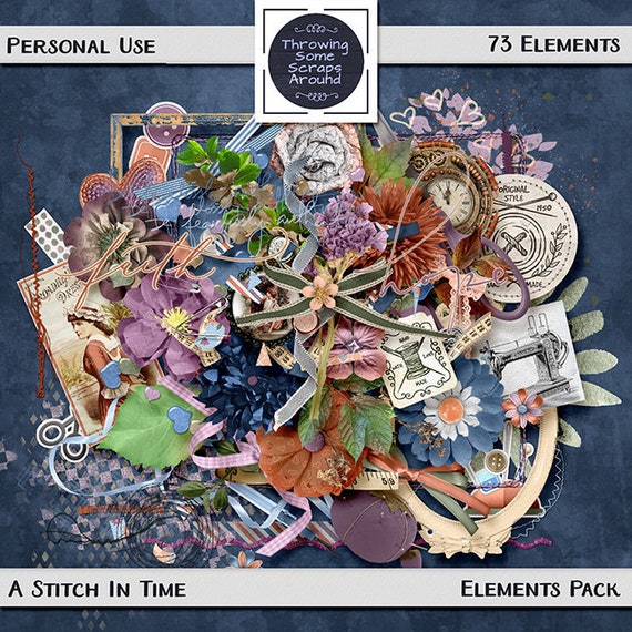 Digital Scrapbook Elements Pack A Stitch In Time Etsy