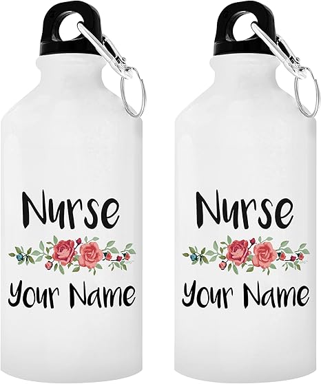 Amazon Com Personalizada Botellas De Agua Floral Enfermera Insertar Nombre Regalos Personalizados Nombre Personalizado Regalo Para Mujer Lpn Regalo Regalo Personalizado Botella De Agua De Aluminio Con Tapa Sport Parte Superior Blanco