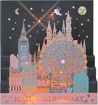 Amazon Com Corte Laser Tarjeta De Felicitacion De Cumpleanos Pop Up Luces Y Musica Office Products