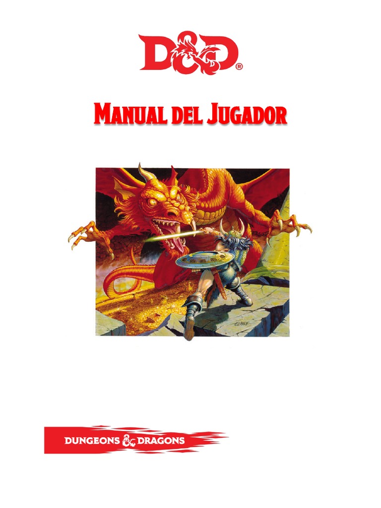 El León de El Español el manual del jugador, hay una versión para Masters que permite compartir el contenido con otros jugadores Por el momento D&D Beyond está sólo en inglés, pero. Dungeons & Dragons Reglas Básicas para Jugadores (V 02) (Básico en la interpretación de las reglas de D&D 50 para el jugador novato) Enlace Dungeons & Dragons Manual del Jugador en español (Manual que contiene las reglas para el jugador y la información necesaria para aprender a jugar). Descripción del Manual del JugadorNúmero de Páginas 3 (contando 4 páginas de Hoja de Personaje)Tipo de Encuadernación Tapa Dura, ilustración en cara frontal completa, textura lisa y brillanteTipo de papel Opaco, impresión brillante En la tapa se parece más a un manual de 4ta Edición, aunque algunos dicen que recuerda a los manuales de primera que tenían ilustraci.