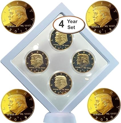 Amazon Com Etradewinds Donald Trump Juego De Monedas De 1er Termino De 4 Anos Edicion De Coleccionista Monedas De Replica Chapada En Oro 17 18 19 Vitrina De Diamante Blanco Certificado De