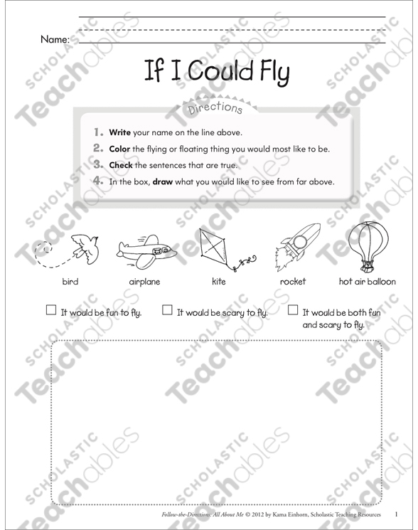 If I Could Fly All About Me Printable Lesson Plans And Ideas Skills Sheets