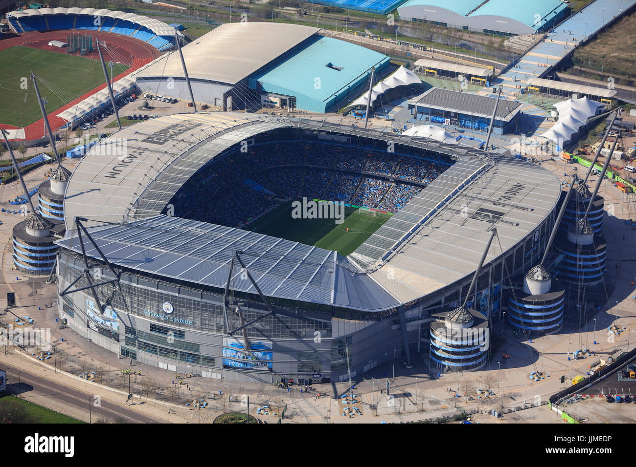 Una Vista Aerea De La Ciudad De Manchester Stadium Hogar Del Manchester City Fc Fotografia De Stock Alamy