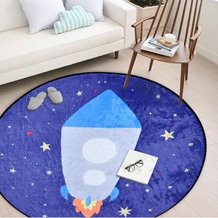 Alfombra Redonda De Dibujos Animados Patron De Cohete Alfombras Para Ninos Area De La Habitacion De Los Ninos Habitacion Para Bebes Jugar Alfombras Antideslizantes Con Suelo De Arrastre 100 Cm Amazon Es Hogar