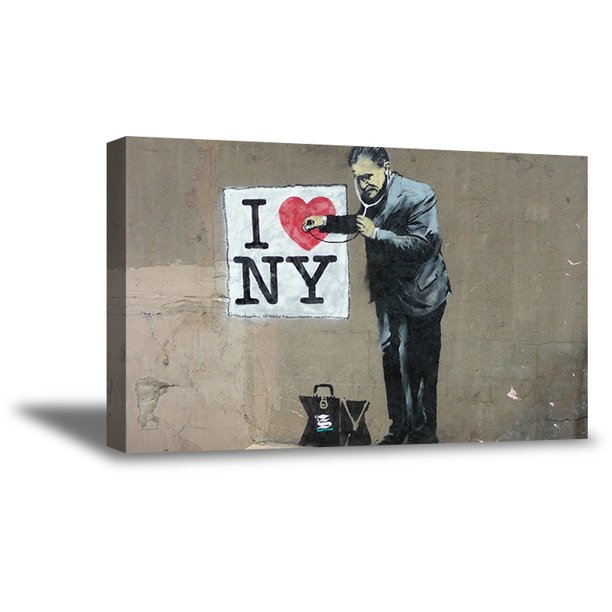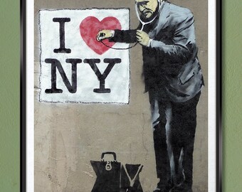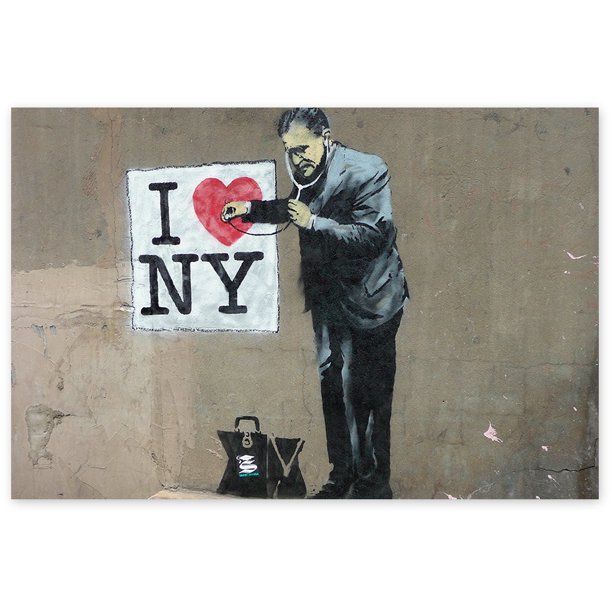 I Love New York ("W x 16"L x 125"H) Banksy Touch of Modern This museumgrade print features one of Banksy's stirring images from his socially and politicallyminded oeuvre Though the graffiti genius has finally been recogniz Enable Accessibility. Was thinking in particular of the I heart NY/doctor and stethescope on Ceder Street?. I Love NYBy Banksy Slim and tall, this contemporary Chelsea wood frame has a matte black finish and is well suited for all art types Slim and tall, this contemporary Chelsea wood frame has a matte white finish and is well suited for all art types.