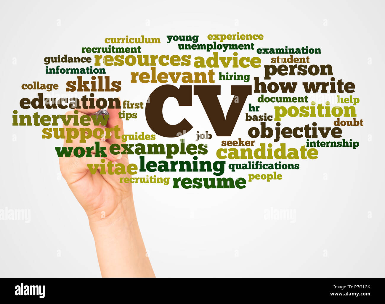 Cv Curriculum Vitae Word Cloud And Hand With Marker Concept Concept On White Background Stock Photo Alamy