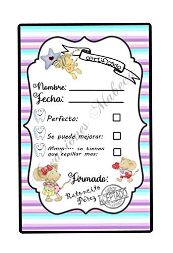 El Certificado Oficial de Recogida de Diente de El Ratoncito Pérez PERSONALIZABLE y GRATIS!. 13nov16 Explora el tablero de Luis "certificado de ratoncito perez" en Ver más ideas sobre ratoncito pérez, ratoncito de los dientes, hada de los dientes. Se trata de un certificado pero no cualquier certificado sino uno donde consta que el Ratoncito Peréz ha recogido nuestro diente Allí podréis incluir el nombre del niño, la fecha en que se cayó el diente, marcar de qué diente se trataba, qué recompensa dejé el ratoncito a cambio y lo más importante ¡en qué estado se lleva el diente!.