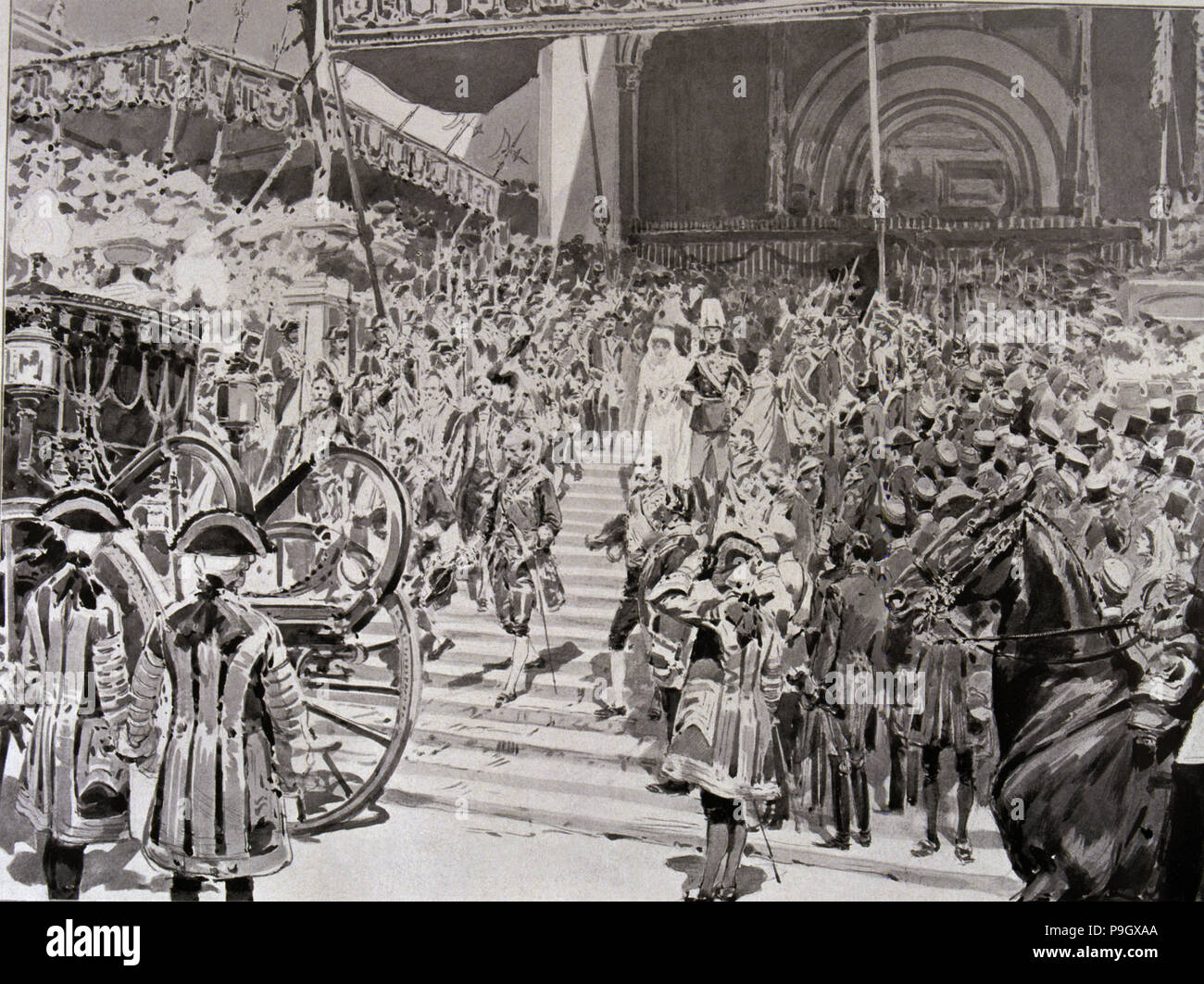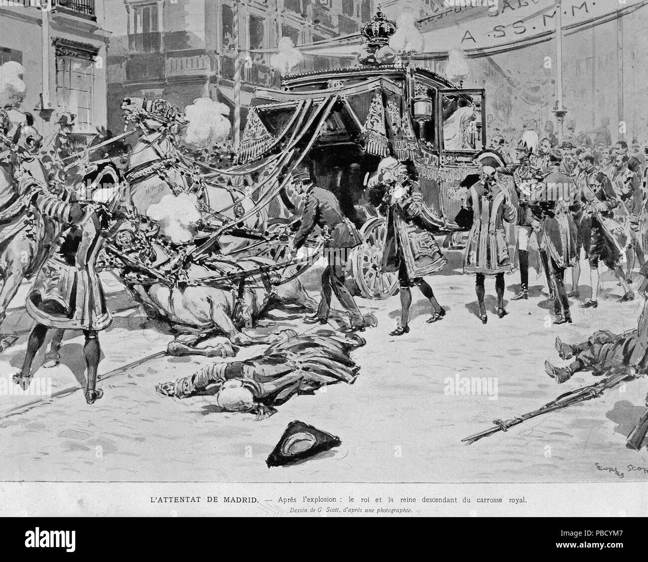 La carroza del rey Alfonso XIII desfila por Madrid camino a Los Jerónimos el 31 de mayo de 1906, día de su boda con Victoria Eugenia de Battenberg Más allá, aquel enlace también tenía una. El día de la boda se encerró en su habitación asegurando que le dolía el estómago y pidió que no le molestaran Tras consumar el atentado huyó por la escalera, perdiéndose entre la. Así fue el atentado contra Alfonso XIII El histórico intento de regicidio el mismo día de la boda real, hace ahora 110 años, propició la exclusiva fotográfica de ABC, obra del joven.