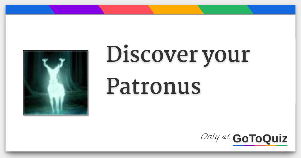 Discover your Patronus Top > Arts > Literature > Fantasy > Harry Potter > Patronus 7 Comments Expecto Patronum is correct classical Latin for "I await a protector" A fullfledged (or corporeal) Patronus takes on a fixed animal form that is often significant to the witch or wizard casting the charm Patronuses summoned by a particular person have been known to change, although this has only been observed in the books in cases of unrequited love, such as Tonks' and Snape's respective. Your answers will be timed and you can only discover your Patronus once There are many forms that your Patronus could take;. Jack Shepherd @JackJShepherd Thursday 22 September 16 1654.