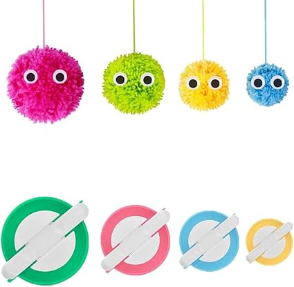 Amazon Com Maquina Para Hacer Pompones 4 Tamanos Pompones Para Hacer Bolas De Pelusa Tejedores Agujas Manualidades De Lana Juego De Herramientas Para Ninos Y Adultos 12 Hilos Acrilicos 1 Tijeras Arte