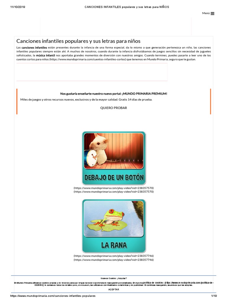 Canciones Infantiles Populares Y Sus Letras Para Ninos Cookie Http Publicidad