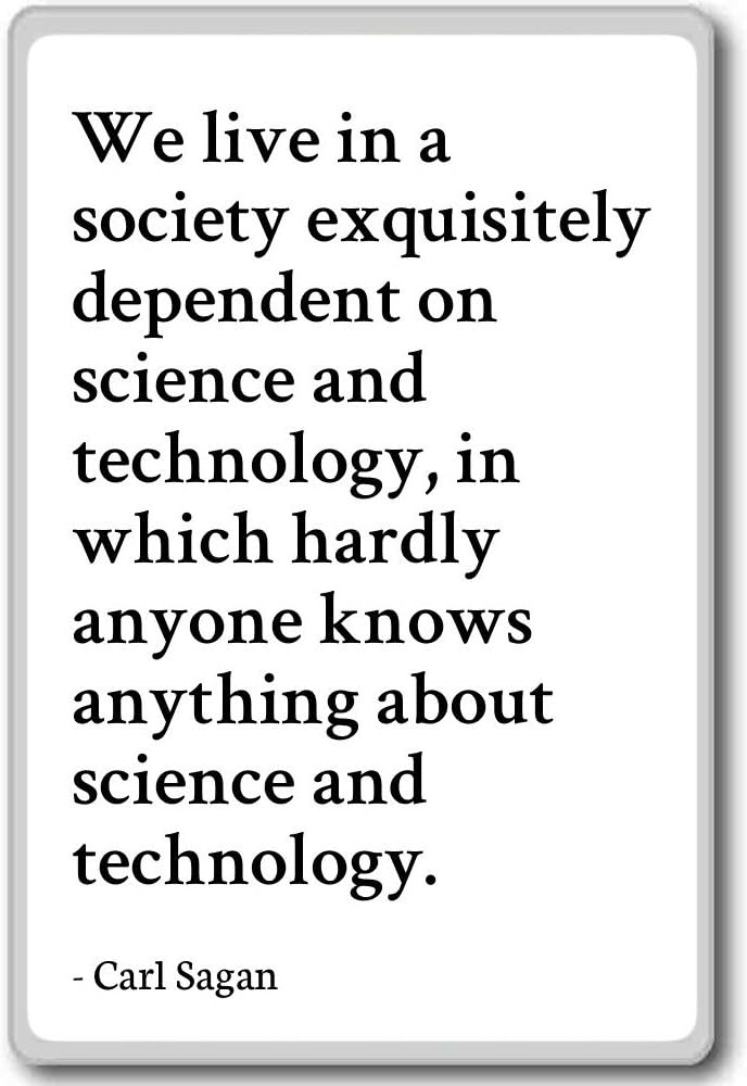 Carl Sagan Quote We live in a society exquisitely dependent on We live in a society exquisitely dependent on science and technology, in which hardly anyone knows anything about science and technology. Search for Carl Sagan at Amazoncom. We live in a society exquisitely dependent on science and technology, in which hardly anyone knows anything about science and technology We are like butterflies who flutter for a day and think it is forever Our species needs, and deserves, a citizenry with minds wide awake and a basic understanding of how the world works.