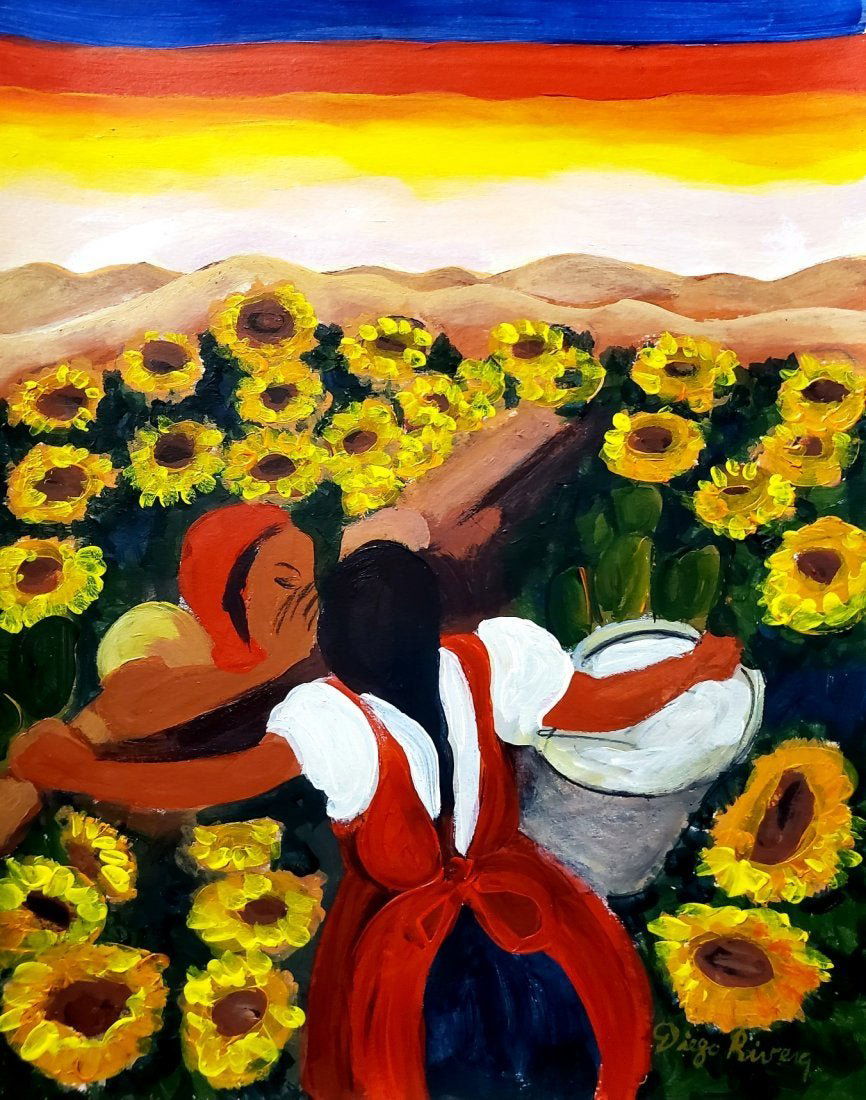 Mexican Art Latin Women Sunflowers Field Diego Rivera Repro 24x36 Oil Painting Mexican Art Diego Rivera Diego Rivera Art