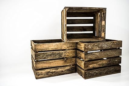 Set 3 Cajas Grandes Envejecidas Sam Madera Decoracion Almacenamiento Marron 50x40x30cm Incluye Iman Personalizable De Regalo Amazon Es Hogar