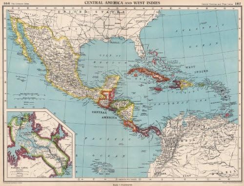 Amazon Com Caribbean Central America Inset Panama Canal Zone Bartholomew 1952 Old Map Antique Map Vintage Map Printed Maps Of Caribbean Posters Prints