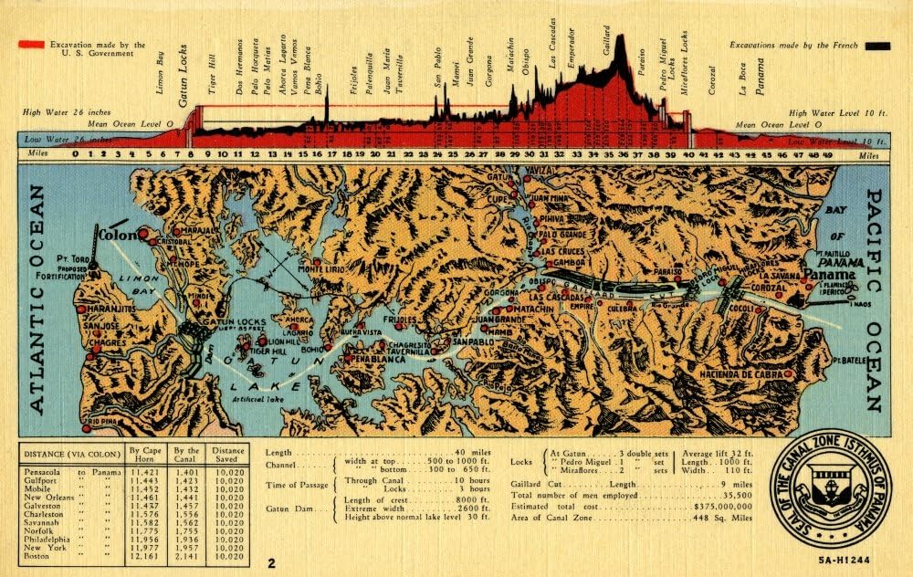 Amazon Com Map Of The Panama Canal From 1944 Complete With Elevations And Details On The Countries That Contributed To Building It Poster Print By Curt Teich Company 18 X 24 Posters