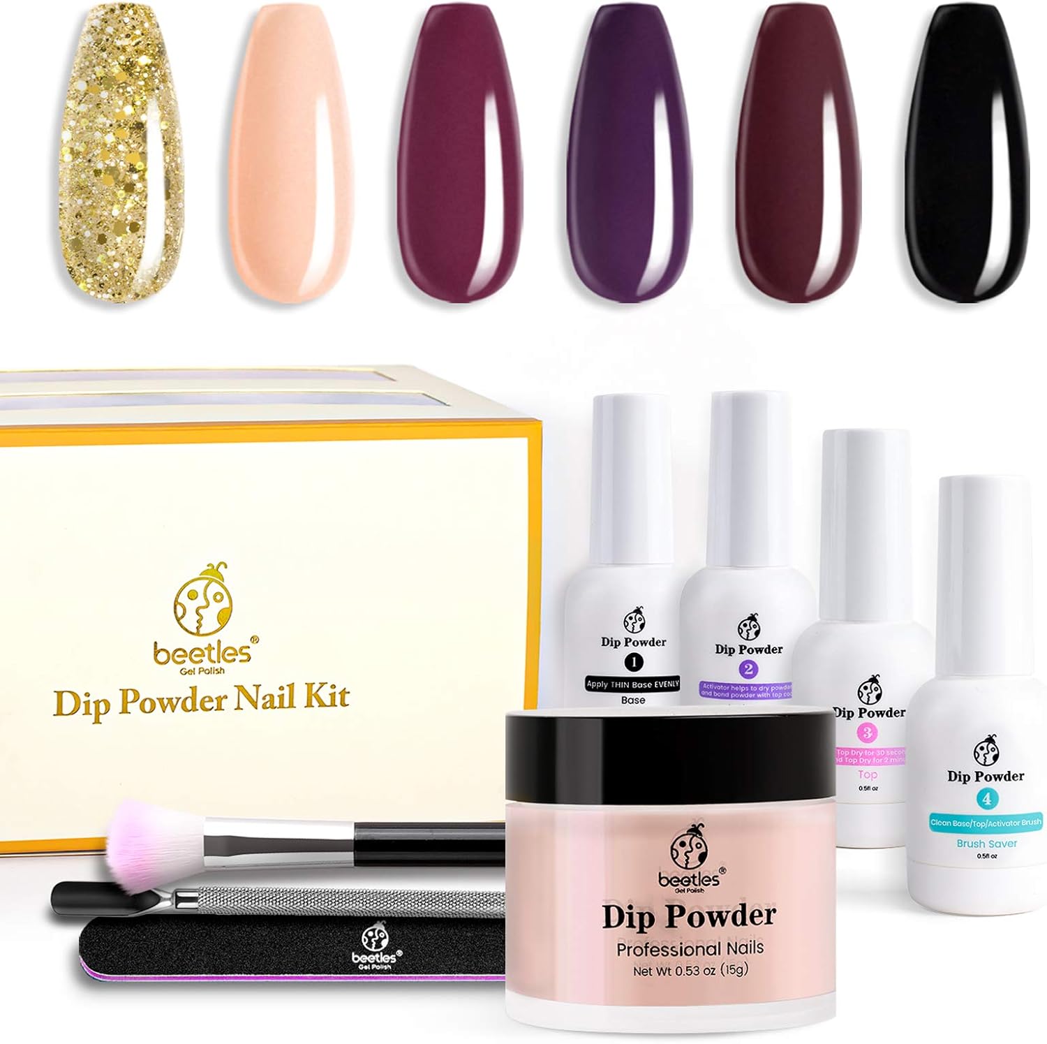 Amazon Com Beetles Dip Powder Starter Kit 6 Colors Fall Gold Glitter Dipping Powder Full Maroon Nail Dip Set Dip System For French Dip Nails Manicure Nail Art Set No Led Nail Lamp Needed