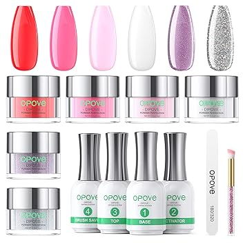 Amazon Com Dip Powder Nail Kit Starter Opove Dipping Acrylic Powder And Liquid Set Starter Kit Glitter Manicure French Nail Art Set Essential Tools 6 Colors Beauty