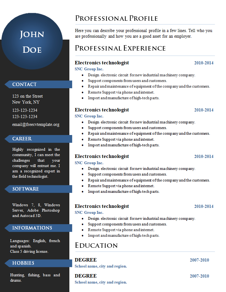 100 Template di CV da compilare Free download CV europeo Scarica il tuo Curriculum Vitae template in italiano e formato Word!. Previously we've told you about the readymade WordPress CV themes, and today we will share with you the top 15 free creative resume templates for Microsoft Word By using any of these Curriculum Vitae templates, you can showcase your experience and skills most appealingly. 2) Alternatively, Microsoft curriculum vitae templates are free for Microsoft Word users Reviewing their templates is a useful way to get a sense of the format and what information to include on your CV.