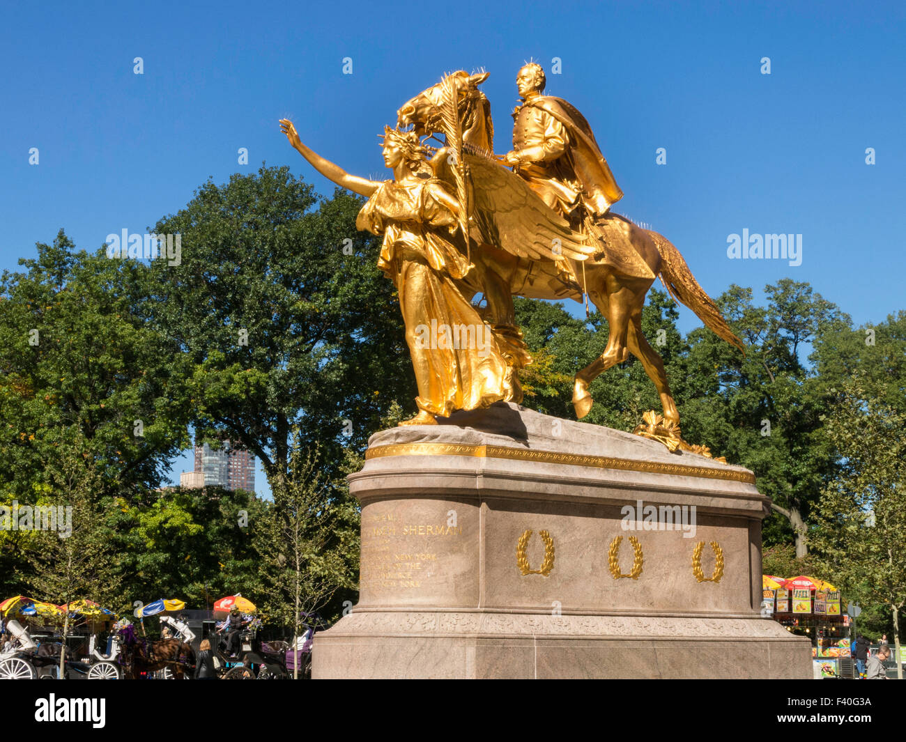 Golden Statue Of General William Tecumseh Sherman In Grand Army Plaza Central Park Manhattan New York City Usa Stock Photo Alamy