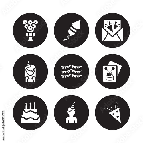 9 Vector Icon Set Bouquet Birthday Rocket Birthday Cake Card Flag Invitation Girl Boy Isolated On Black Background Buy This Stock Vector And Explore Similar Vectors At Adobe Stock Adobe Stock
