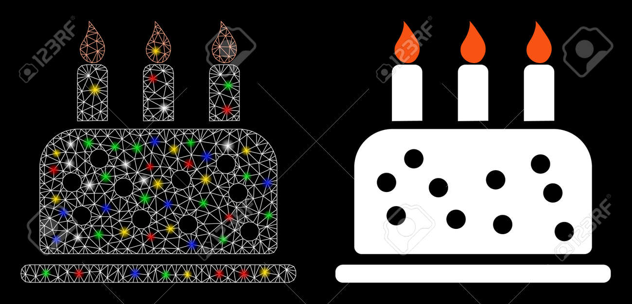 Flare Mesh Birthday Cake Icon With Glare Effect Abstract Illuminated Royalty Free Cliparts Vectors And Stock Illustration Image