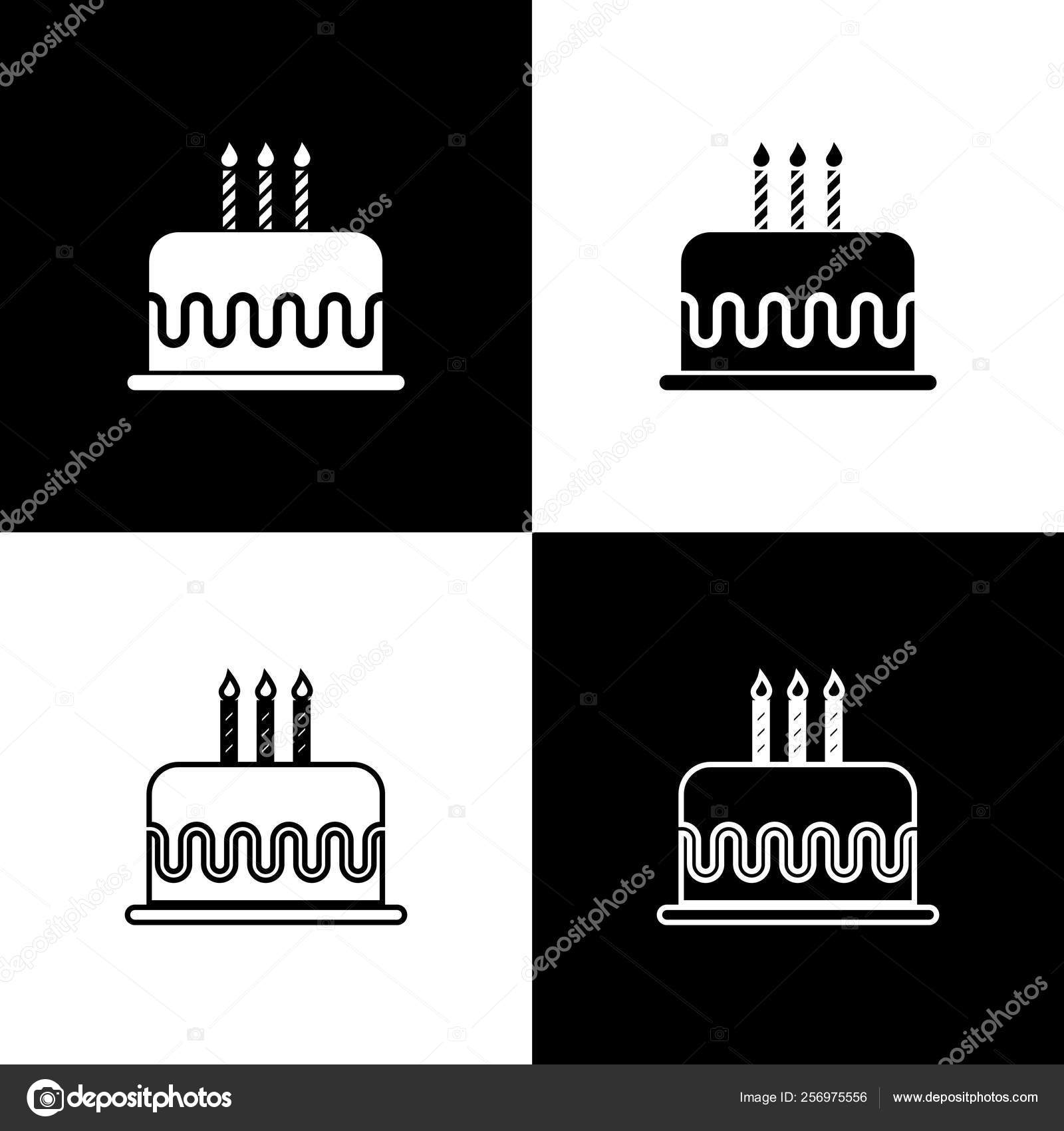 Set Cake With Burning Candles Icons Isolated On Black And White Background Happy Birthday Line Outline And Linear Icon Vector Illustration Stock Vector C Vectorvalera Gmail Com