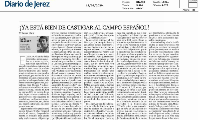 Articulo De Opinion De Luis Ramirez En El Diario De Jerez Asaja Cadiz