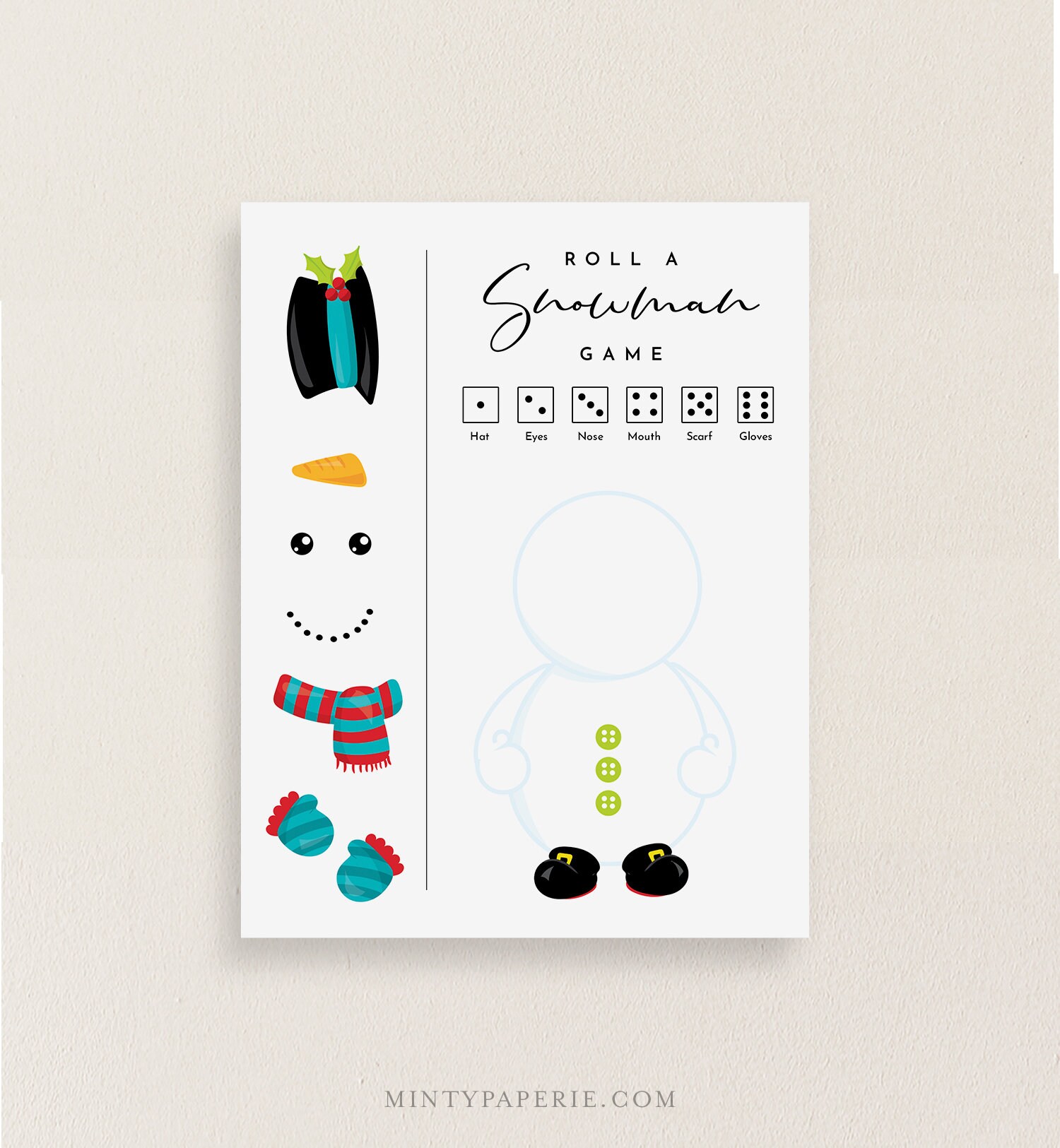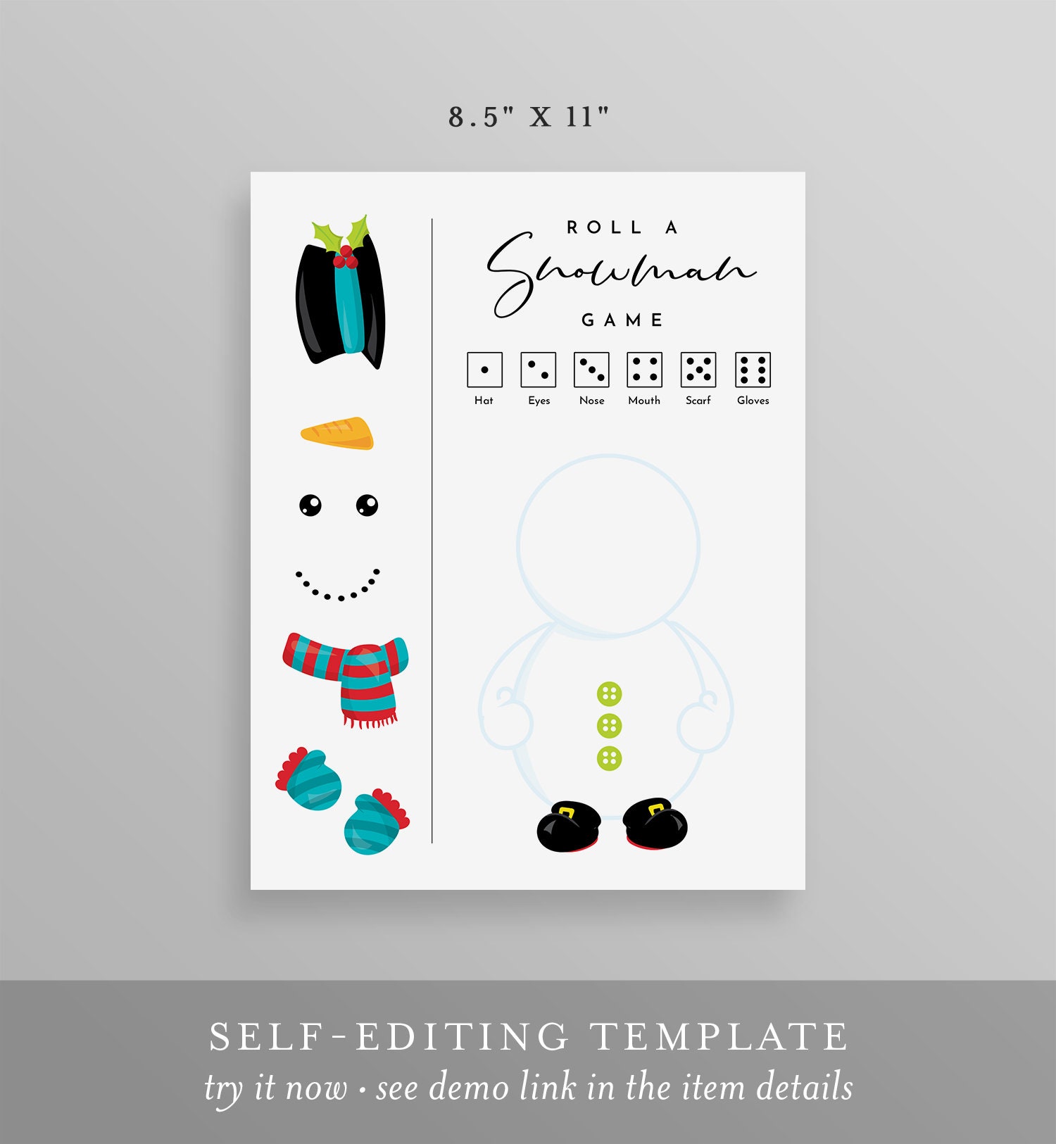 Roll A Snowman Game Christmas Party Game Printable Kids Dice Game Build A Snowman Game Holiday Party Instant Download Templett 111cg