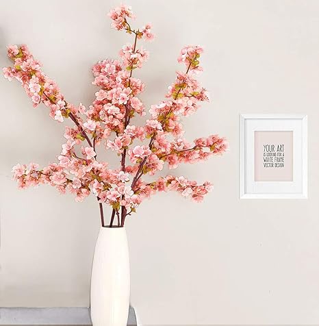 Amazon Com Yibelaat Cherry Blossom Artificial Flowers 4pcs Silk Cherry Blossom Branches Tall Fake Peach Cherry Blossom Decor Flower Arrangement For Ome Wedding Decoration 41inch Pink Kitchen Dining