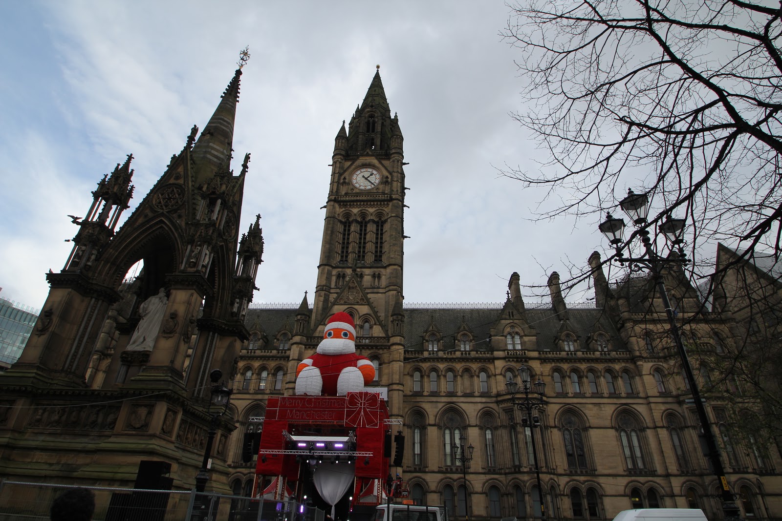Manchester News Men Look Who S Back Giant Santa Gets Hoisted Into Place At Manchester Town Hall Http T Co Ebgaes2krn Http T Co Svcsongfoo