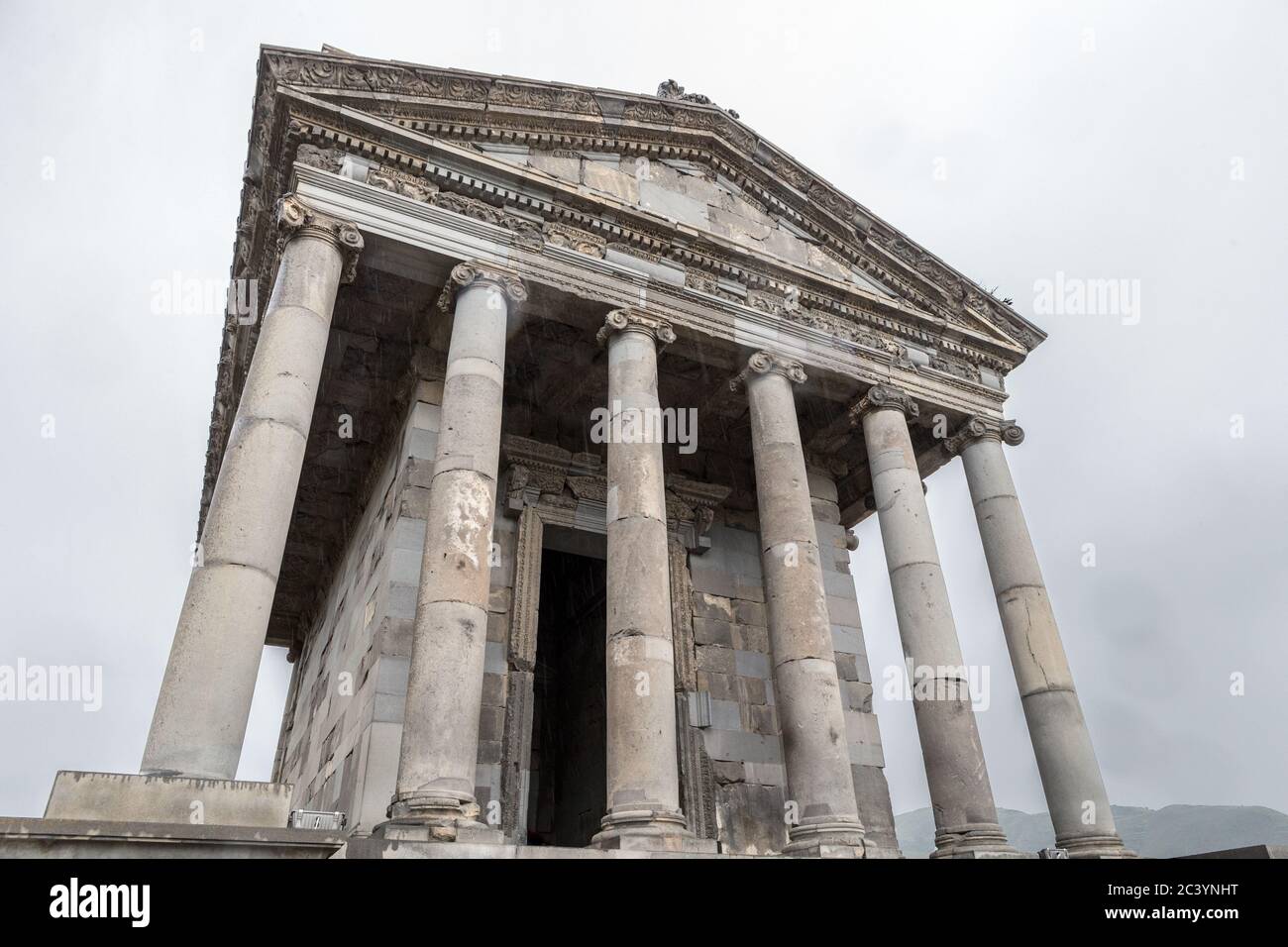 Garni Templo Ionico Del Siglo I A Dios Sol Mihr Bajo La Lluvia Con Renovaciones Erevan Armenia Es El Unico Fanerunto De Pie Con Columnas Greco Romanas Fotografia De Stock Alamy