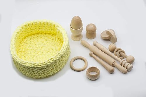 Cesto Tesoros Bebe Con 10 Piezas De Madera Kit Montessori Amazon Es Handmade