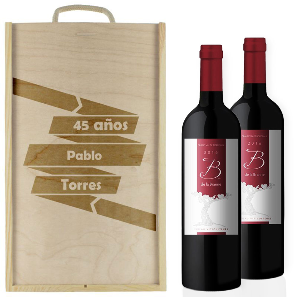 Caja Madera Con 2 Botellas Vino De 0 Ml Personalizada