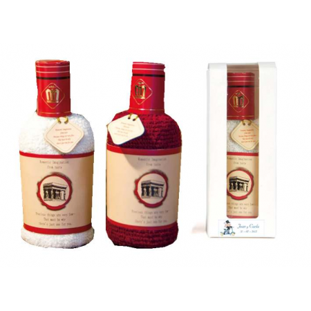 Toalla Con Forma Botella Vino En Cajita Y Tarjeta Personalizada
