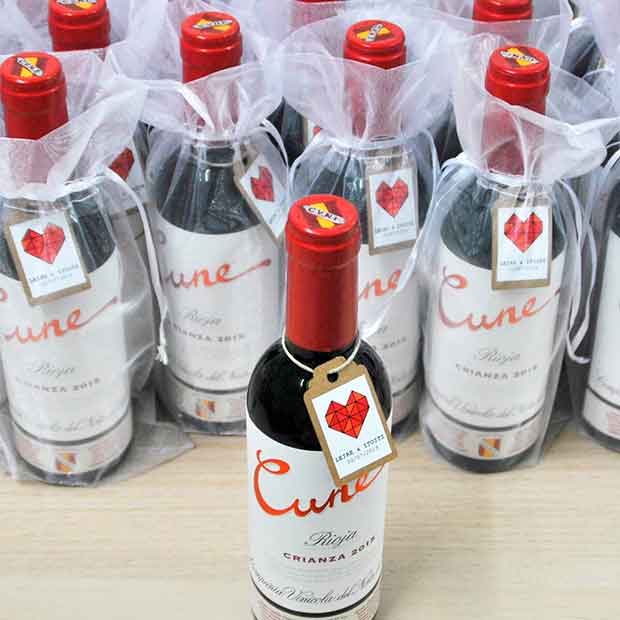 Las Botellas de Vino Blanco personalizadas para Bodas son el último grito en una boda Es un detalle muy bonito para los invitados en el día de la boda o llevárselas de recuerdo a casa Un obsequio de lo más original. Vino personalizado en 1 hora Botellas con etiquetas de Seda Botellas con Grabados personalizados Cajas vacías personalizadas para botellas Acompañe sus botellas personalizadas con la imagen principal de su etiqueta y el texto que desee Realizada en cartulina tipo tarjeta Tamaño x 10cm Primera tarjeta 4,95 €. Si va a regalar una botella de vino personalizada y quiere darle un toque de exclusividad, entonces le recomendamos la impresión por grabado láser Grabar por láser el nombre de la persona que recibirá la botella personalizada va a sorprenderle muy gratamente un regalo de empresa con mucha presencia y un marcado carácter.